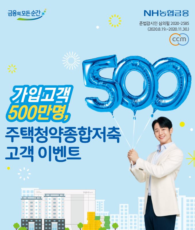 제가 가입한 은행에서는 가입고객 500만명 기념해서 신규가입고객 대상으로 이벤트도 진행하고 있습니다. 얼른 다시 1순위가 되서 저도 내집마련하는 날이 왔으면 좋겠습니다.