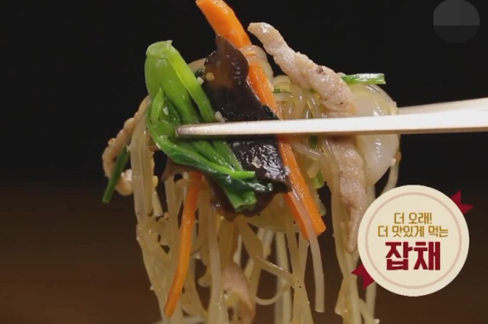 - 당면은 간장 한 스푼을 넣고 끓는물에 7분간 강불로 끓여주세요.
