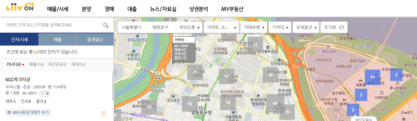 KB국민은행 실거래가 조회