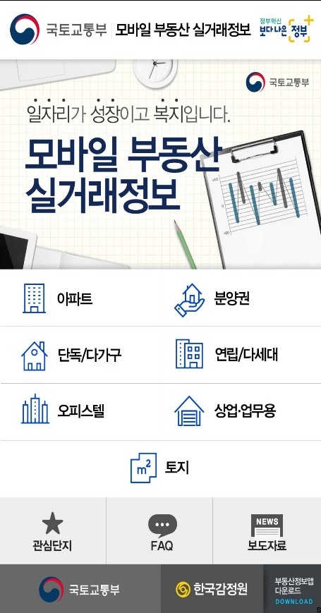 아파트 실거래가 조회 방법으로 우리가 가장 많이 쓰는 스마트폰에 어플을 다운받으셔서 조회 하실 수 있습니다. 우선 스마트폰 플레이스토어에 실거래가를 검색 하신 후 다운로드 받아주세요. 어플을 다운로드 받으시면 모바일 거래정보라 뜨고 아래쪽에 원하는 형태의 집이 뜹니다. 조회를 원하는 집을 클릭해 주시고 조회를 해주시면 실거래가 조회가 됩니다.