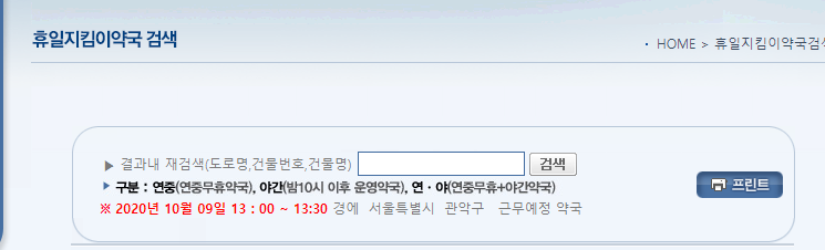 여기까지 휴일지킴이 홈페이지에서 휴일에 문여는 약국을 검색하는 방법이였습니다. 검색을 하고 꼭 전화를 해서 영업중인지 확인 하시고 방문하시는걸 추천드립니다.