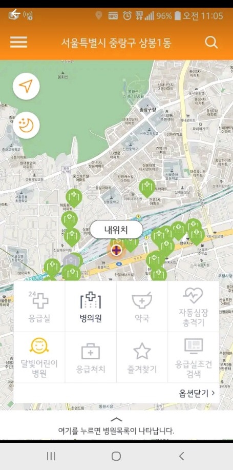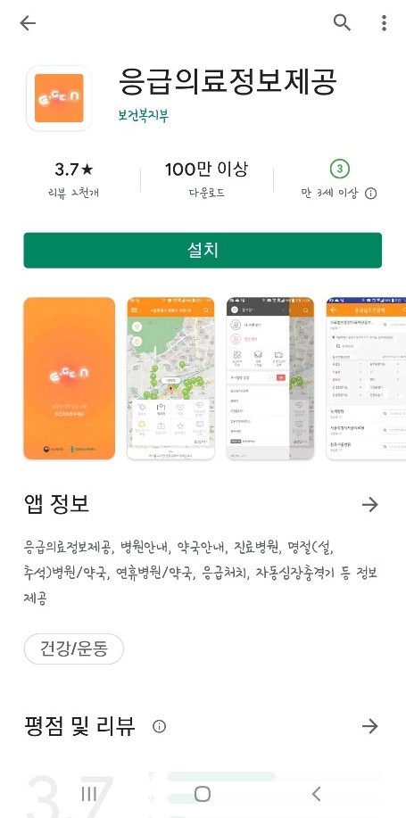 또하나 찾은 앱은 응급의료정보제공 앱입니다. 지도중심으로 실시간 진료가능한 병원을 찾을 수있는건 물론 야간이나 주말에 진료가능한 병원도 찾을 수있고 응급실상황 한눈에보기등 휴일 약국검색하는 것말고도 다양한 기능이 있는 앱입니다. 주말에 병원을 찾고 계신 분들에게도 유용하게 쓰일 것같습니다.