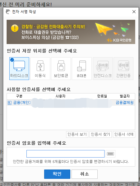 PC로 공인인증서 갱신하기