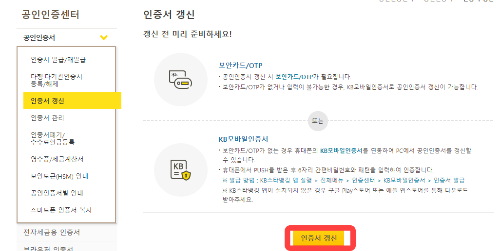 스마트폰으로 인증서 갱신하기