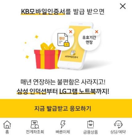 처음에 공인인증서를 국민은행에서 발급지는 않았지만 국민은행을 주로 사용하다 보니 공인인증서를 1년마다 갱신해야될 때가 있었다. 그래서 오늘은 국민은행 공인인증서 갱신 방법은 알아봤다.
