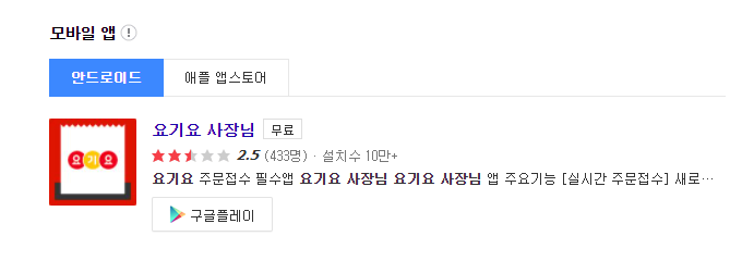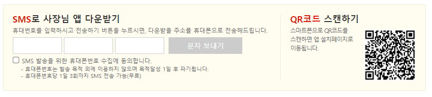 인터넷을 통해 사장님 사이트를 이용하실 수도있지만 스마트폰 앱을 통해서도 이용이 가능합니다. 인터넷을 통해 요기요 사장님 홈페이지에 접속하시면 사이트 아래쪽에 SMS로 사장님앱 다운받기를 통해 다운을 받으셔도 되고, 스마트폰 플레이스토어에서 요기요사장님을 검색하셔서 다운을 받으셔도 됩니다.