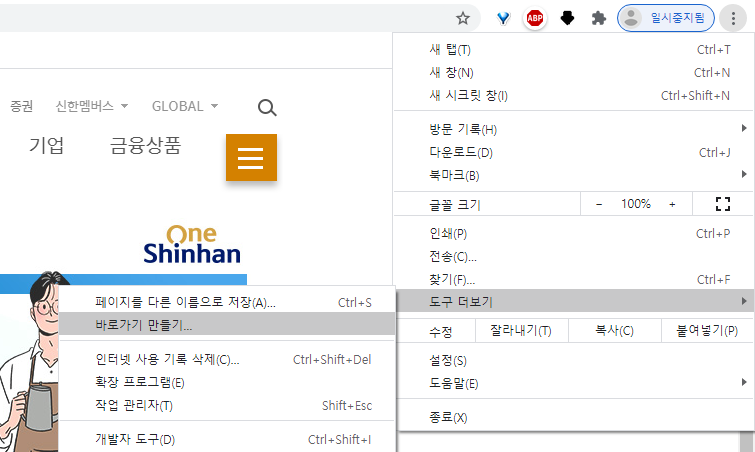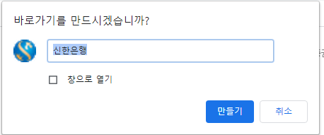 신한은행 인터넷 뱅킹 바탕화면에 바로가기 만들기