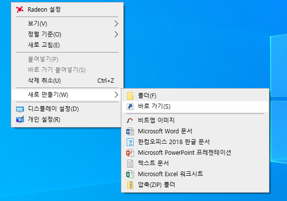 2)바탕화면에서 바로가기 만들기