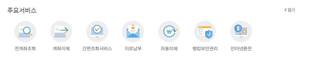 원하시는 방법으로 로그인을 하신 후 계좌조회,계좌이체,자동이체,인터넷 환전등 주요서비스 말고도 공과금, 예금이나 카드등의 다양한 서비스를 이용하실 수있으니 원하시는 서비스를 찾아서 이용하시면 될것같습니다. 만약 원하는 서비스를 찾아서 이용하시는데 궁금한 사항이 있다면 아래의 고객센터 번호로 전화하시면 될 것같습니다.