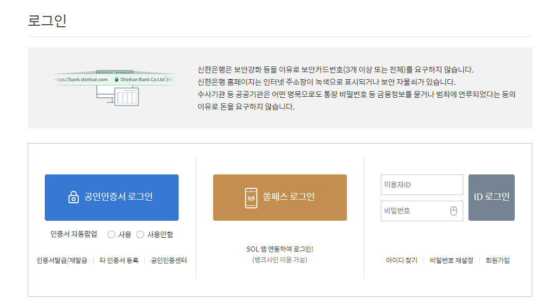 신한은행 인터넷 뱅킹 로그인