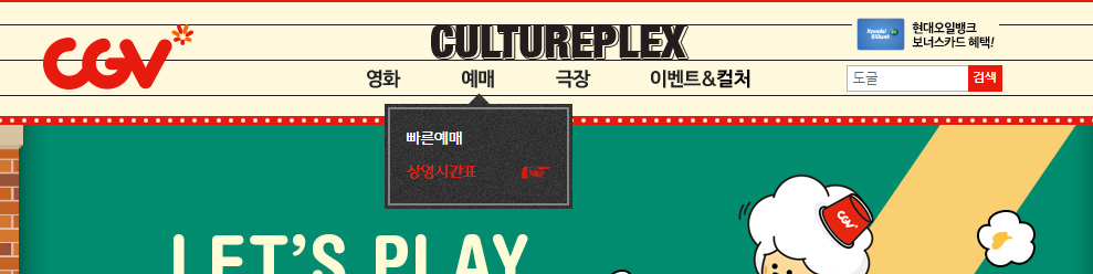 아래의 링크를 통해 cgv홈페이지로 접속하시면 다양한 혜택과 예매등을 할 수있습니다.