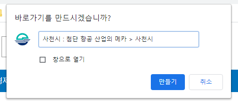 사천시청 홈페이지 바탕화면에 바로가기 만들기