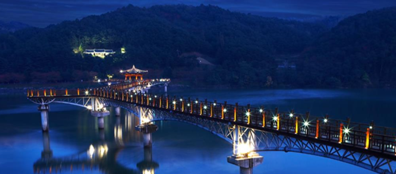 안동역에서 내려서 아름다운 안동의 야경을 볼 수있는 코스입니다. 영호루는 계절마다 풍경이 다르고 산책하기에도 좋습니다. 음악분수는 4월에서 10월까지 펼일 20시에, 주말에는 14시와 20시에 가동합니다. 아름답고 숭고한 사랑을 오래도록 기념하고자 아내의 머리카락으로 만든 한켤레 미투리 모양을 다리 모습에 담겨져 있는 월영교는 밤에가면 아름답게 조명이 켜집니다.