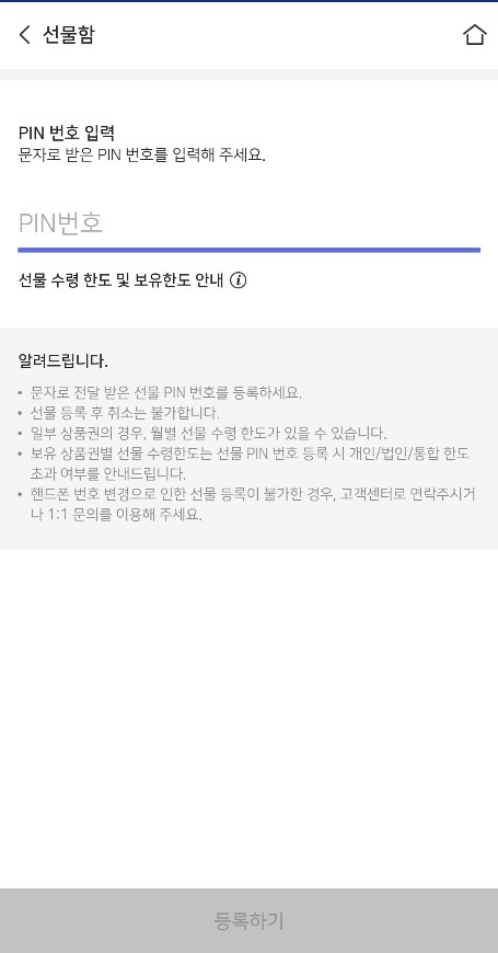 온누리 상품권을 구매하신 후 온누리상품권을 선물하실 수있습니다. 선물한 온누리 상품권은 문자로 전달되고 문자로 전달된 상품권을 등록하기 위해서는 선물/쿠폰등록을 눌러주신 후 문자로 전달받은 핀번호를 등록해주시면 됩니다.