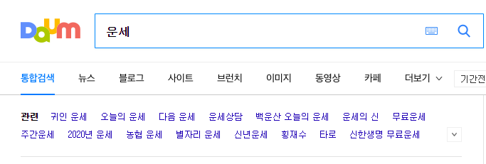 다음 검색창에 운세를 검색하시면 아래쪽에 띠별, 별자리, 생년월일 등 오늘, 내일, 이번주, 이달 등으로 다양하게 운세 확인이 가능하시니 띠별 신년운세 말고도 궁금한 운세가 있으시다면 검색해 보시길 바랍니다.