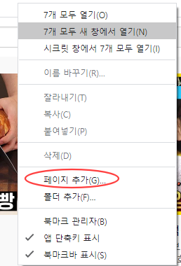 마우스오른쪽버튼 -> 페이지추가 -> 페이지이름설정및 페이지주소입력 ->저장