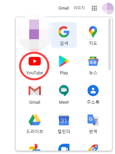 유튜브를 바로가는 방법 첫번째는 구글에 들어가서 구글 메인검색창 오른쪽 위에있는 메뉴 버튼을 누르면 유튜브로 들어갈 수있다.