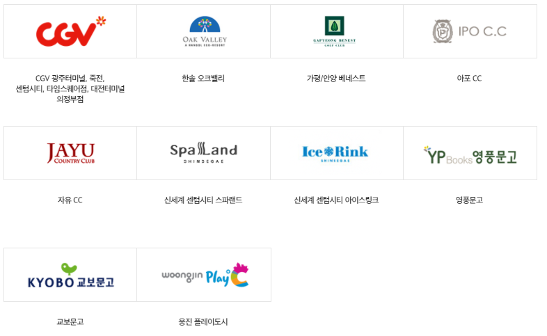 마지막으로 레저/문화, 건강검진은 CGV, 교보문고, 영풍문고, 웅진플레이도시, 서울성모병원, 을지병원등에서 사용가능 합니다.