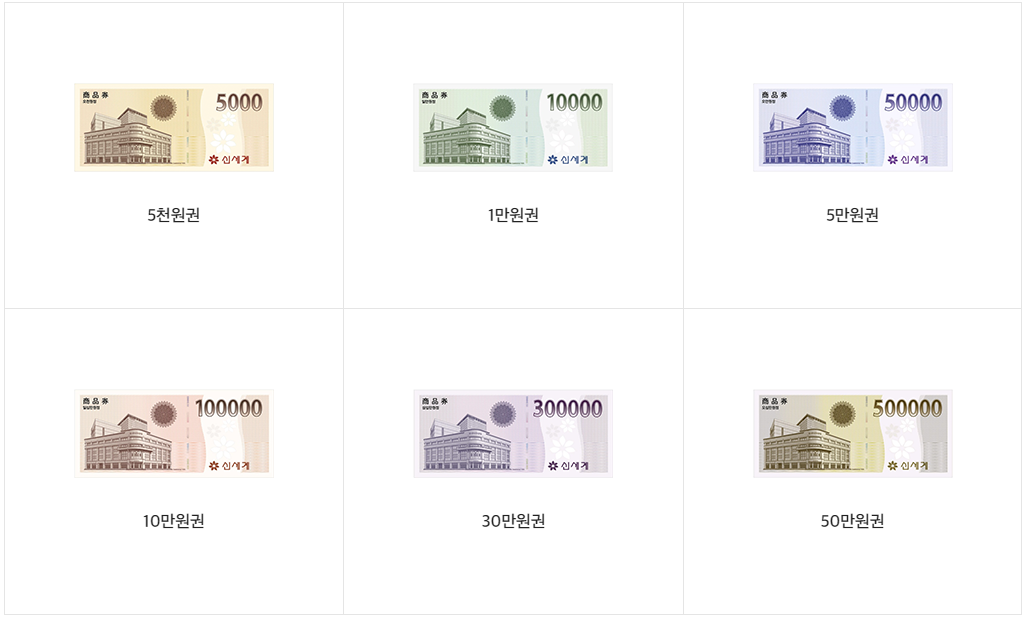 신세계 상품권을 구매시 공식판매처를 통해 구입하지 않은 상품권의 부정사용 시도가 있으니 주의하여, 신세계에서 정한 판매처에서 상품권을 안전하게 구매하고 사용하길 권장합니다.