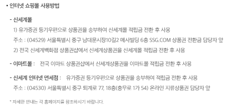 유의사항이나 더 자세한 사용처를 원하시면 www.shinsegae.com/service/membership/certificate.do 홈페이지나 상품권 뒷면의 QR코드를 이용하시면 확인 하실 수있습니다.