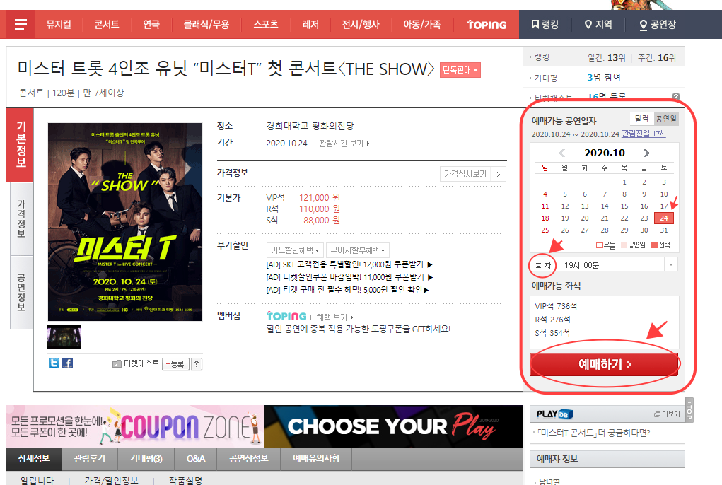 인터파크 티켓예매방법(PC)