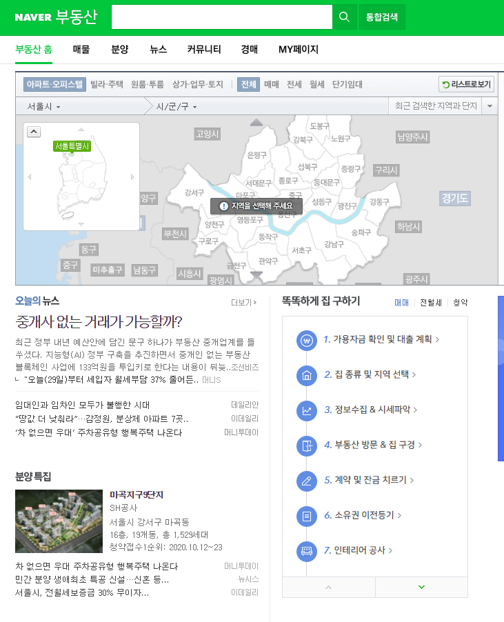 네이버 부동산에 접속하시면 지역을 선택하여 아파트 실거래가를 확인 하실 수있습니다. 네이버 부동산 사이트는 오늘의 뉴스나 똑똑하게 집 구하기등의 서비스도 제공하고 있습니다. 집구할때 어떻게 해야될지 모르겠을때 보면 유용할 것같은 정보들 입니다.