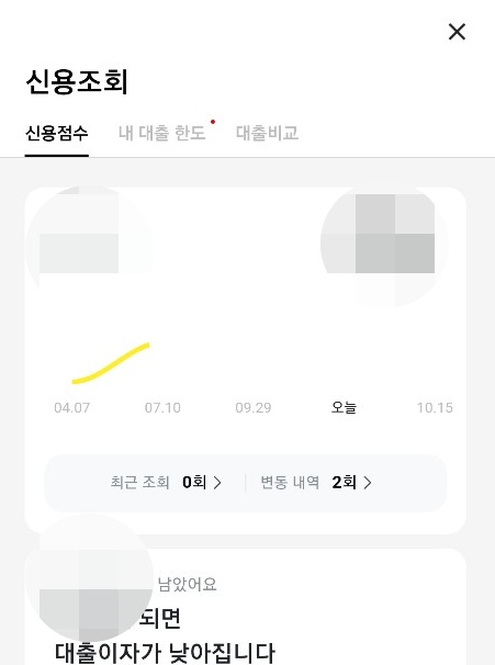 로그인을 완료하면 내 신용정보 조회버튼이 뜨고 내신용정보 조회를 클릭해 주시면 됩니다.