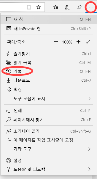 마지막으로 엣지 쿠키삭제방법입니다. 엣지를 실행시켜주시고 오른쪽 상단에 메뉴버튼(점점점)을 눌러주시고 기록을 클릭해주세요. 그럼 지금까지 내가 접속한 기록이 나오는데 여기서 기록지우기를 한번더 눌러주시면 검색 데이터 지우기가 뜹니다. 지우기 원하시는 버튼을 눌러주시고 지우기 버튼을 눌러주시면 검색기록이 모두 삭제됩니다.