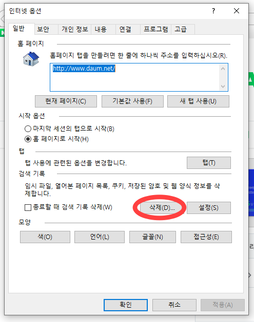 여기까지 인터넷 검색기록 지우는 방법이였습니다. 만약 이렇게 매번 들어가서 지우기가 싫으시다면 삭제하기 버튼 근처에 브라우저를 닫을때 항상 이데이터 지우기나, 종료할때검색기록 삭제등의 버튼을 클릭해 주시면 인터넷을 끌때마다 검색기록이 삭제됩니다.