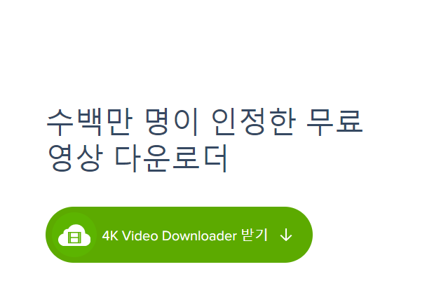 구글 검색창에 4k video downloader를 검색하셔서 맨위에 뜨는 사이트로 접속해 주세요. 접속하시면 4k video downloader다운로드받기가 뜨고 녹색버튼을 눌러 다운로드 받아주셔야 프로그램을 사용하실 수있습니다.