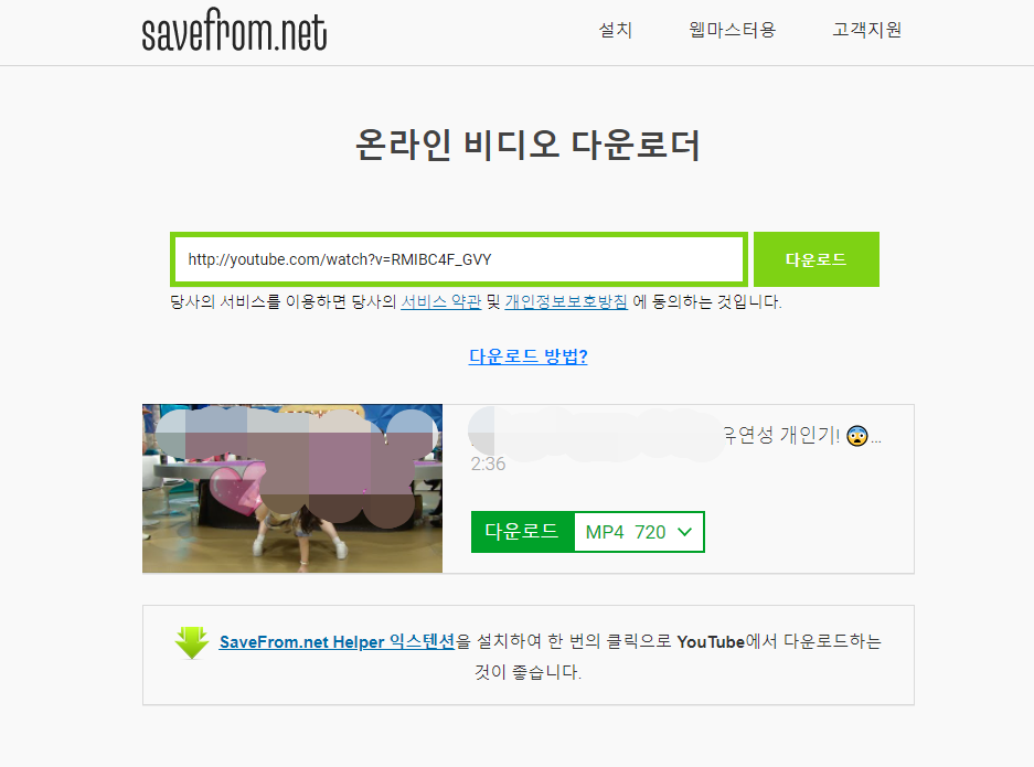 구글 검색창에 온라인 비디오 다운로더라고 검색하시고 맨위에 있는 사이트로 접속하셔서 동영상 주소를 입력하셔도 다운로드 받으실 수있습니다.