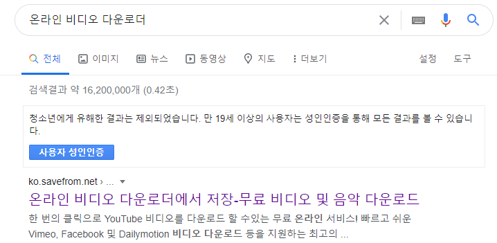 엔터(Enter)을 눌러 주시면 유튜브 동영상 다운로드 하는 사이트에 접속이 되고 내가 원하는 동영상이 가운데 나오고 다운로드라고 나옵니다. 다운로드를 눌러 주시면 다운로드가 완료됩니다.