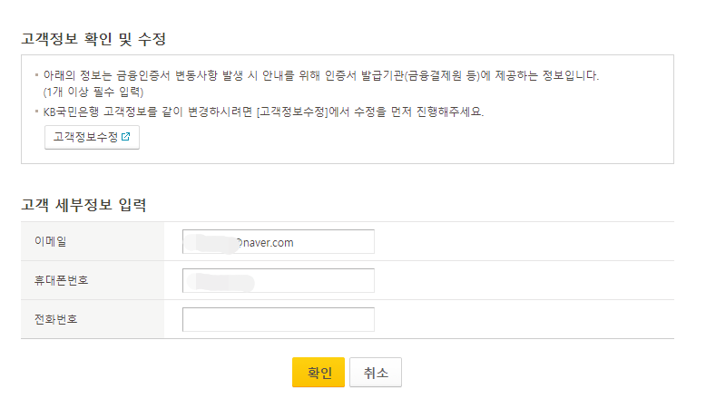 세단계 인증을 모두 하셨으면 마지막으로 고객 세부정보를 입력하시고 확인 버튼을 누르신 뒤 금융인증서비스를 시작합니다 팝업창에 이름과 휴대폰번호, 생년월일을 입력하시고 확인을 눌러주시면 됩니다. 개인 컴퓨터라면 자동연결하기를 눌러 다음로그인 부터는 금융인증서비스를 시작합니다 팝업창이 뜨지않고 비밀번호 6자리 입력으로 로그인이 가능합니다.