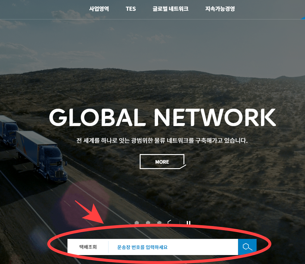 조금더 자세히 내 택배의 위치와 배송기사님의 정보등을 알고 싶으시다면, 검색창에 CJ대한통운을 검색후 홈페이지를 들어가시면 바로 아래쪽에 운송장번호를 입력해서 조회를 해주시면 됩니다.